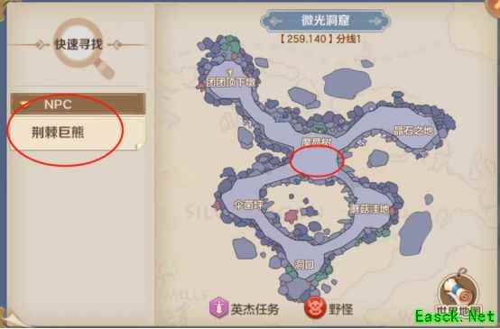 此外,若到对应地图不清楚魔兽刷新位置,可点击右上角地图,打开后在NPC处会显示魔兽名称,点击即可自动寻路至目标地点。