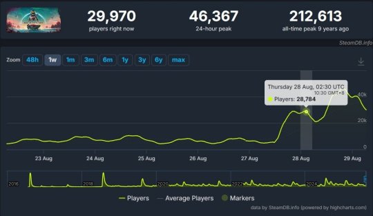 对于一款已推出九年的游戏来说,《无人深空》的更新频率着实惊人,这要归功于Hello Games团队的执着坚守。自去年夏天以来,该游戏陆续推出了颠覆性的"世界"第一、二章更新、垂钓更新、古生物发掘更新等多项内容,而开发团队显然没有放慢脚步的迹象。 ![]() 昨日,这家工作室再度为《无人深空》带来惊喜更新,推出了一系列强大的新工具让玩家打造终极星际飞船。这剂良方似乎精准治愈了玩家的审美疲劳——仅一夜之间,游戏玩家数量暴增三倍有余。 ![]() 根据SteamDB数据统计,在"远航者"更新上线当日,《无人深空》Steam平台同时在线玩家峰值达到29,158人。24小时峰值人数更是到达46,367人,现在还有29,970名玩家在享受自定义大船的乐趣(截至发稿前),预计周末峰值人数将更高。而前两日的数据分别为8,658人和8,366人,意味着本次更新使玩家数量呈现三倍以上的增长。七月时游戏最高在线人数为15,381人,不足昨日峰值的一半。事实上,29,158这个数字更是自二月份"世界第二章"更新以来的最高纪录。 ![]() 昨日推出的"远航者"更新允许玩家建造"大型多人定制飞船",新增功能包括常规的船体、机翼、发动机与推进器模块,更引入了医疗舱、居住区、作战指挥室、传送装置等可自定义装饰的内部舱室。这些全新的创造系统采用了Hello Games新作的技术架构,显然玩家们迫切希望提前体验这套技术的实际表现。 ![]() 这一切充分证明了Hello Games与《无人深空》所培育的惊人社区凝聚力。单凭一次更新就能召唤如此规模的玩家回归,这无疑是众多游戏工作室梦寐以求的成就。 |