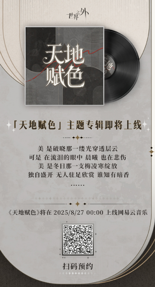 8月27日,网易无限流言情手游《世界之外》更新,七夕期间,玩家可体验到全新特殊副本?天地赋色?、暇光全新场景【卧室】! 来世界之外,与他共度七夕! 七夕将至, 与有情人之人心手相牵,共度良宵。 ![]() 全新特殊副本「天地赋色」,正式开启 与一次商务沟通会议上, 你突然来到异世界,成为美妆商人。你的任务是,建立独属你的商业帝国。 都说做生意先混脸熟,为了全面攻占市场,你决定探访四大领土,没想到不用混都熟过头。 久居高塔的亡灵法师为你露面, 游走世间的暗夜精灵因你停步, 英武不凡的圣骑士帮你招人, 神秘强大的巫妖王邀你留宿。 顾客黏性是不用怕了,顾客们都黏着你不放。 ![]() 绝美侧影:天地赋色 世界侧影上线 顾时夜「天地赋色」侧影丨永夜无冬 冰雪覆盖的北境,流传着其统治者——巫妖王的传说。 作为第一个,也是唯一一个闯入他心门的人, 他将为你,开放此境的一切特权。 “满足了吗?这里的一切,都是你的颜色了。” ![]() 易遇「天地赋色」侧影丨葳蕤春无 循着林中花草的芳香,你与游荡于此的精灵相遇, 看似宁静祥和的森林,实则暗藏玄机。 再靠近一点,再让他……“看”清你。 “现在帮我摘掉好么?我想完整地感受你。” ![]() 柏源「天地赋色」侧影丨无边翱翔 辉光之下,光明骑士团守卫着人族的土地。 跨越喧嚣与人潮,他却只为你停下脚步。 守护人族是使命,守护你,是他的私心…… “看在我为你辛勤打工的份上……你要给我什么报酬?” ![]() 夏萧因「天地赋色」侧影丨岁无长生 睥睨众生的穹顶,居住着这片大陆上最强大的法师。 没有活人能抵达这里,而你,是他唯一的例外。 作为交换,请献上你的灵魂,与他共同探索……魔法的真谛。 “这就试完了吗?要不要……再大胆一点?” ![]() 动人音乐:「天地赋色」音乐专辑 “美,是破晓那一缕光穿透层云, 可是,在流泪的眼中,晨曦也在悲伤; 美,是冬日那一支梅凌寒绽放, 独自盛开,无人驻足欣赏,谁知有暗香。” 世界之外「天地赋色」主题歌:「天地赋色」,现已上线网易云音乐平台。 感召总次数达300次,将额外自动获赠“《天地赋色》主题歌”。达750次,将额外自动获赠“《天地赋色》主题曲”。 ![]() 暇光【卧室】场景,现已全面开放 一屋二人,四季相守, 与他相伴,时光温暖。 8月27日,世界暇光场景【卧室】全面上线! ?全新睡眠陪伴系统,共度相伴同眠的时光。 ?暇光空间Live2D互动升级,共你沉浸在夜色私语时…… ![]() 衣装福利,惊喜来袭! 暇光卧室限定居家服「岁月缱绻」,8月20日更新后登录即送! 「夜色时光」系列服饰福利升级,适用场景扩充,特别支持书房/卧室双场景穿着。 *除“适用场景扩充”的服饰外,暇光空间服饰仅能在单个场景穿着。 ![]() 七夕佳节 | 回到暇光空间,接收他的心意 接收他为你留下的心意信函。 七夕佳节,他也为你准备了礼物。 正值兰夜,与他共度一段心动时光…… ![]() ![]() ![]() ![]() 《世界之外》是网易推出的一款无限流言情手游,全新特殊副本「天地赋色」、暇光【卧室】场景已上线,这个七夕,与他们一起度过! 】。 |