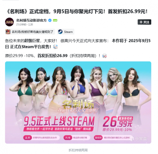 热度攀升的真人互动恋爱影游《名利场:我被好莱坞美女潜规则了》定档9月5日,首发折扣价26.99元。游戏卷质量还卷价格的诚意,吸引了越来越多的玩家关注。 被称为“美版《完蛋》”的真人互动恋爱影游《名利场:我被好莱坞美女潜规则了》,定档9月5日在Steam平台发售,首发折扣价26.99元。游戏本身具有“西式纯爱”和“娱乐圈上位”等话题度,再加上低于目前市场上多数互动影游的定价,迅速引发了大量玩家的广泛关注。游戏中玩家将作为男主角,在好莱坞发展星途的同时,被卷入与7位女主令人心跳加速的情感漩涡。 ![]() ![]() 一经亮相,游戏先是在小黑盒游戏热议榜单占据第一位,随后在游戏资讯热榜中跃居第三名。 视频在短短几小时内在小黑盒达到38万的视频播放量,虽然不是平台主流创作形式,但其阅读量超过了排行榜第一的图文。游戏关注人数在一天之内激增了2000人,市场热度持续攀升,这款真人恋爱互动影游具备的爆款潜力不容小觑。 ![]() 游戏的开发商和发行商是北美先锋影游公司 Interactive Films LLC,作为海外互动影游厂商,IF公司的第一款产品在质量上卷到了好莱坞的同时,价格给到了玩家十足的诚意。相比同类产品如《完蛋2》45元的定价,本次26.99元的首发价被玩家称为“外卖价”,不仅进一步为广大玩家降低了互动影游的体验门槛,也体现出IF公司“卷品质也卷价格”、以玩家为导向的诚意。 ![]() 全新互动游戏《名利场:我被好莱坞美女潜规则了》由北美影游公司 Interactive Films LLC 发行。该作品以好莱坞演艺圈为背景,打造出一部质感真实、视角独特的沉浸式恋爱模拟体验。 ![]() 该作并未直接强调“她不一样”,而是通过扎实的叙事与高度情境化的互动设计,为玩家提供一种深入观察与体验西方世界的内在视角。这部以西式叙事风格为主线的首款好莱坞猎艳模拟器,为玩家带来了一场新颖而真实的恋爱模拟体验。 ![]() 游戏中,玩家将扮演一位意外踏入好莱坞演艺圈的普通人,从偶然获选参演热门肥皂剧开始,一步步踏上闪耀星途。随着事业快速上升,玩家不仅需要应对演艺圈的复杂挑战,更将陷入多段让人心跳加速的情感纠葛。 ![]() 本作采用三维成长打分系统,通过演技值、好感指数与奇缘指数实时反馈玩家选择所产生的影响。 ![]() 演技值直接关联主角的演艺事业发展,好感指数反映女性角色的心动程度,奇缘指数则影响隐藏角色与特殊剧情的解锁。三者共同构建了本作的决策维度和重复可玩性。 ![]() 互动叙事涵盖从片场对戏到情感渐生的多层次体验,玩家的每一步选择都将影响剧情走向。游戏独特的回溯功能允许玩家随时返回之前的节点,重新做出选择,而女主也会配合你接受“再来一次”的邀请。 ![]() 借助这一设计,每一次对话的选择都可能开启新的故事分支,玩家得以逐步解锁丰富的剧情可能性。而隐藏于众多选择之中的,正是通往角色专属结局的关键。全面尝试、深入互动,揭开你与角色之间独一无二的结局。 本作打破了传统恋爱影游的“造梦”叙事模式,通过互动体验为玩家提供了重新了解西方恋爱的真实视角。有玩家反馈称,“希望游戏能为日后跨国恋爱提供参考”,正是基于此类真实诉求,制作团队打造了一段高度贴近现实的好莱坞式沉浸体验。 ![]() 游戏聚焦当代两性情感话题,试图以内容真实性和情境代入感,使作品超越娱乐功能,成为具备现实参照意义的跨国情感交往指南。 ![]() 为了回馈玩家的热情,官方还邀请各位玩家为奖励内容进行投票,社区奖励涵盖圣杯、电竞椅、键盘等奖品,奖励规模及价值十分丰厚,做到充分听取玩家的声音,给玩家真正想要的东西。 ![]() 作为首款聚焦于西式恋爱的全欧美女星出演真人互动影游,本作以“一份外卖价”的诚意带领玩家睁眼看世界,体验一场怦然心动的跨国奇缘。此外,《名利场》官方还透露,将于中国的七夕节(8月29日)推出专属神秘活动,更多福利与惊喜正在筹备之中,可以期待一波。游戏现已在Steam开放商店页面,玩家可添加心愿单并关注官方社群,获取最新资讯与福利动态。