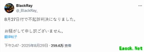 此前报道,日本电竞组织CAG Osaka旗下《彩虹六号:围攻》职业选手“BlackRay”Hasegawa与另外六人因涉嫌绑架拘禁、施虐并勒索受害者约200万日元(约合1.3万美元)被捕。受害者于1月29日至4月30日期间遭辗转囚禁于多处地点,期间被施以沸水浇烫、铁锤殴打等酷刑。 8月29日,“BlackRay”在推特发文表示自己已经收到无罪的判决,并称自己为引起的骚动致歉。虽然“BlackRay”选择在这一天公开消息,但判决实际上于8月27日就已经下达。 据悉,该案件的起因据称是主谋Yuto Oshiro与受害者之间的装修纠纷。4月30日,Yuto Oshiro驾车载着受害者时与出租车相撞后逃逸,受害者才得以脱困。 本文由制作发布,未经允许禁止转载。 更多相关资讯请关注:彩虹六号:围攻X专区 |