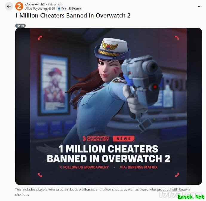 暴雪重拳出击!《守望先锋2》封禁超100万作弊者