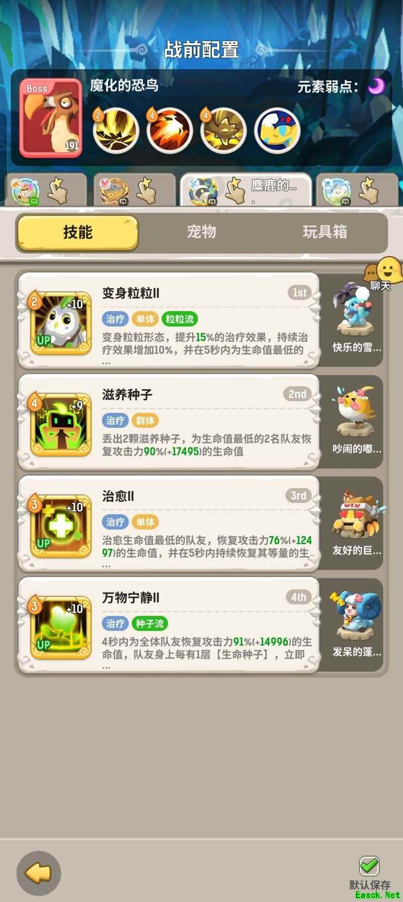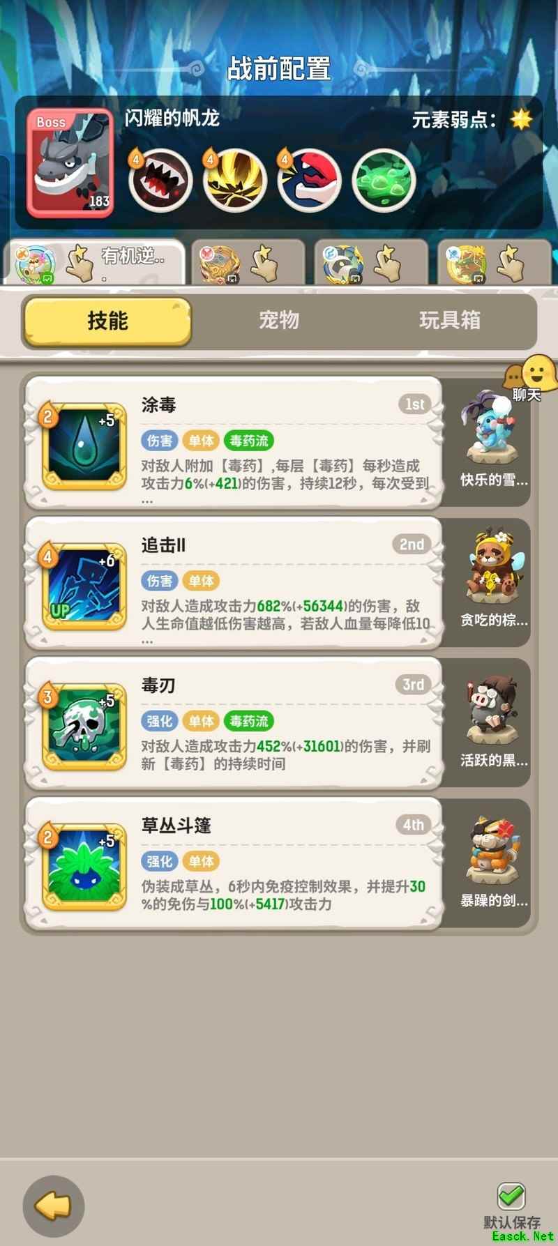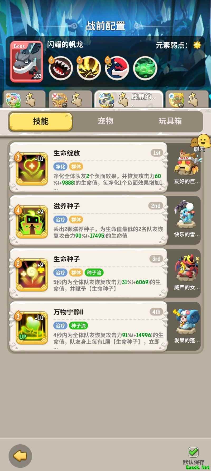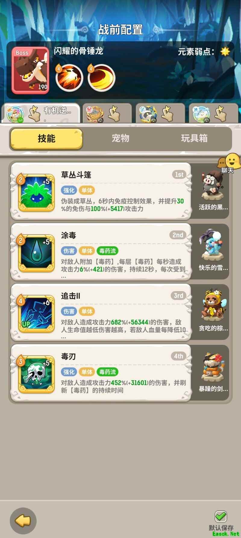 好久没认真研究配队了,自从新版本上线后很多玩法都发生了变化,这边打算继续更新一些推图的记录(后续会根据进度持续补充,如有不足之处还请各位大佬多多指正)。 我们队伍卡住的怪物较多,有时并非极限作业。 3.9 幽暗戈壁7 帆龙(阵容总价值4900万) 降低攻击令人烦恼,可选择用药缓解。 2.净化负面 3.带抵抗 成功击败骨锤龙与帆龙的最终幽暗一役! 骨锤龙2.0版本现身幽暗戈壁192区域,强势登场。 这边肉装扛起来不吃力,可以带狂战配合奶妈减轻净化的负担。 肉扛不住上药,换玩具(这边还没到那种程度,所以只换了雪鼠和奶妈) 独臂悬崖栖恐鸟 肉能抗住,打断两次(上钩+玩具) 肉盾难以承受啄击,群体治疗打断一次即可。 这边卡在伞蜥输出,过几天再挑战。 3.11版本对结晶和装备进行了小幅调整,首波伞蜥挑战已结束。 打伞蜥技巧:在59秒时使用一次伙伴呼唤,使其在60秒狂暴时优先读条,利用顶击蓄力时间提升输出。 3月15日通过独臂山崖关卡,伞蜥输出达标即可。 |