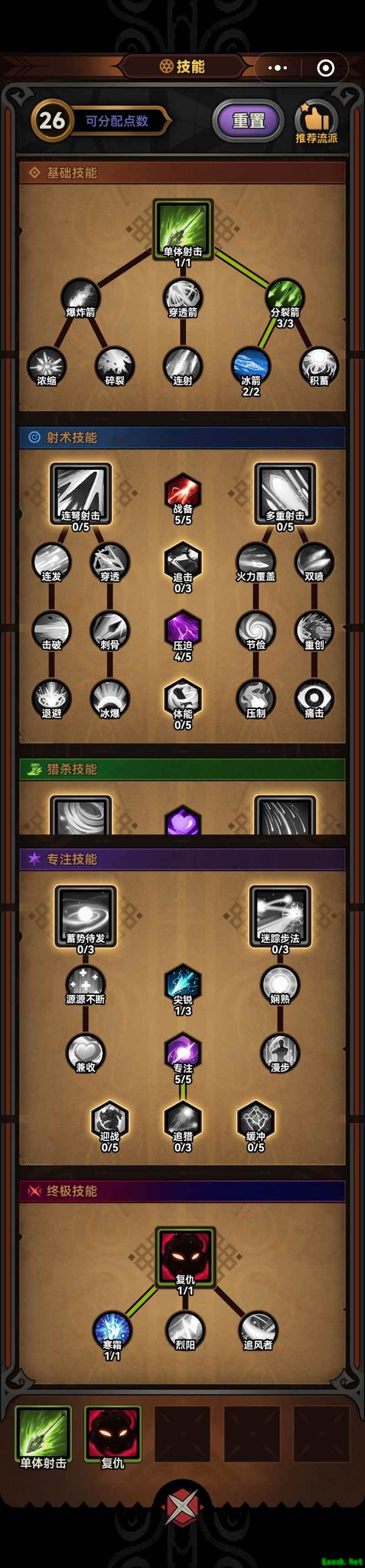 迷雾大陆新手上路指南来啦!本文为你详细解析弓箭手前期装备搭配与技能加点技巧,助你轻松应对秘境挑战,快速提升战力,不再迷路! 又来喽!!! 今天聊聊我对伤害的看法以及新手该如何入门。 新手玩弓箭看过来!前期装备怎么搭配?刚入门时有什么用什么,,技能加点要怎么选? 基础技能选择,只需贴近怪物移动,其余交给运气即可。 第二个技能选择,这样搭配的原因是能与前面的积蓄技能配合,更高效地恢复能量,使装备更容易触发效果。 猎杀技能只需提升全能属性。 第四项,第五项是关键核心技能,虽然只有2点,但必须加点。留意技能描述,冷却时间为50秒,持续效果达20秒。 前期搭配魔咒长裤,后期换成格雷特之裤,可持续触发终极技能。巅峰加点顺序:优先冷却缩减,接着伤害加成、暴击伤害、暴击率、伤害减免、全元素伤害,最后是攻击属性。 推荐搭配:深渊护手搭配伊维特护肩,持鸣魔弓配合无名者箭袋,寒霜护符与圣母馈赠加朴素套装。萃取选择大师之眼,搭配瓦洛伦特箭袋、格雷特裤子和鹰眼神符。宝石优先镶嵌在胸甲和护腿上,武器与副手尽量选用能提升经验获取的装备,并适当提高巅峰等级以获得更多属性加成。 2、齐射套装搭配狂战士之怒、极速鞋和神火之符。萃取选择大师、灼炎、契而科之约与鹰眼神符,缺失部分可参照上述配置。 终极加点参考图中方案1,方案2则是将中间的点数分配到多重、火力、节俭和压制上。如果想提升移动速度,可将宝石商人胸甲和护腿中的宝石换成移速属性,这样大约30秒就能触发一次效果。 有点混乱,方案2适合小有成就后使用,否则达不到预期效果。前期可适当添加,还有没提到的部分可根据个人喜好调整。 |