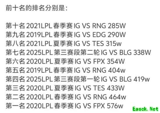 真正的流量大王!IG对BLG赛事观看数据暴涨:常规赛播放量前十都是IG的