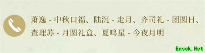 他的中秋节日问候 北极星福利驾到 9月24日23:59之前,玩家们登录《光与夜之恋》依然可以接听到五位男主的节日电话。“萧逸-中秋口福”、“陆沉-走月”、“齐司礼-团圆日”、“查理苏-月圆礼盒”与“夏鸣星-今夜月明”,五通电话伴你度过甜蜜的一天,回顾中秋节的浓情蜜意。同时,今天之内大家还能听到五位男主的中秋特别登录问候。在设置内设定登录语音为【默认问候】时,才能聆听到中秋登录语音哦。