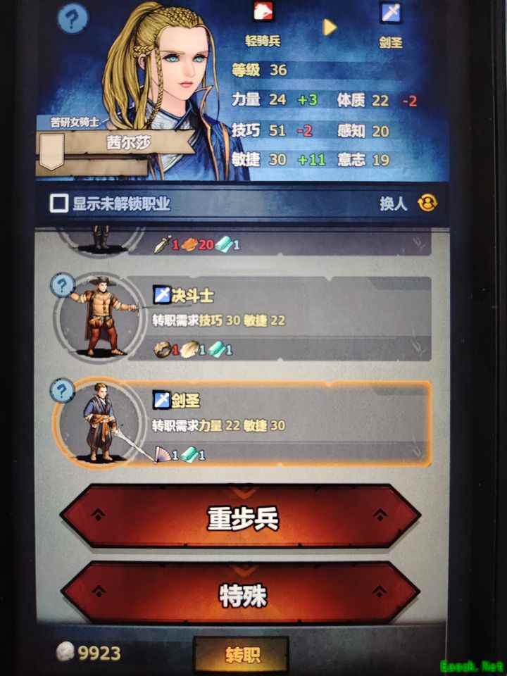 按照某位大佬的建议,从获得小公主开始培养角色,通过剧情获取经验。剧情结束后,角色达到36级,早早转职斥候,迅捷属性已到4级,敏捷37,力量18,加上赠送的饰品才勉强到21级,无奈转职轻骑兵(力量+3,敏捷-7),刚好满足剑圣的条件,实战效果还不错。 这位用户很懒,以下是大佬的帖子。 本攻略适合新手参考,完美小公主可略过。多次尝试后发现,剑圣小公主升级过程中最紧缺的是敏捷属性,因此培养时应优先提升敏捷成长。 路线选择:轻步兵→轻骑兵→勇士→斥候→剑圣,属性达标后直接转职,无需刻意卡等级。如果资金充足,可优先转为游侠,若资源紧张则忽略这一步,差距不大。 通关后开启佩尔大剑神器任务,方可进入安特菜布。 |