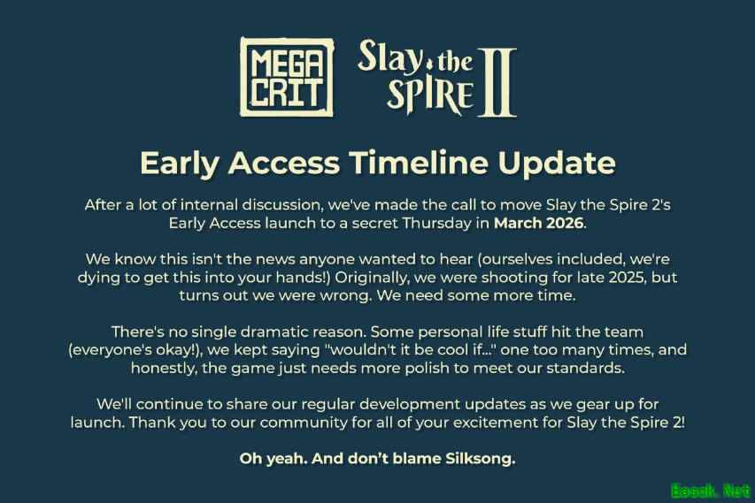 经典卡牌肉鸽续作《杀戮尖塔2》宣布延期上线