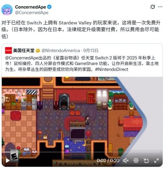 日本除外! 《星露谷物语》将获Switch2版免费升级