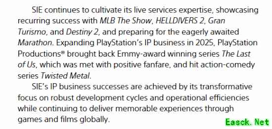 索尼新公司报告规划未来发展:单人和在线服务型游戏双管齐下!