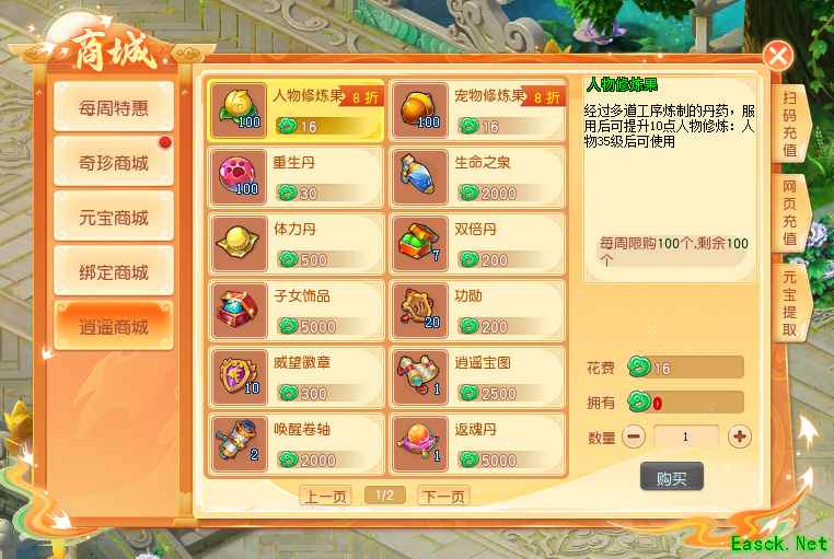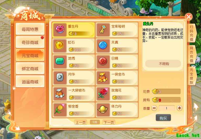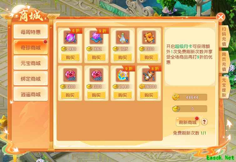 购物是一种可以提供多巴胺的快乐活动,当然前提是要荷包足够鼓。当然,你也可以在游戏世界里体验购物的快乐,比如来《逍遥情缘》的商城看一看。这里面商品琳琅满目,不同分区所需要的货币可能也有所不同,今天一起去看看吧。 【五大分区 商品繁多】 商城一共有5个分区,首先是每周特惠。这里面卖的全是限购的折扣商品,而且每周会重置一次。如果你有什么道具想买的话,建议先来这里看一看,花最少的元宝买最好的货,这才是真理。 接下来是奇珍商城,这个商城中的商品并非固定的,而是随机刷新的。你每天有一次机会主动刷新商品,如果你开了超级月卡,那么会多加一次主动刷新机会,并享受全场9折的优惠。 接下来要说的是元宝商城和绑定商城。元宝商城就是最常规的商城,没有优惠和特殊规则,但是商品最多最全面。而绑定商城里的商品和元宝商城里的差不多,但必须用绑定元宝消费。 最后就是用逍遥币消费的逍遥商城了,逍遥币是通过开通周卡、月卡得来的,每天上线都有得领。10逍遥币的购买力与1元宝相当,所以别看这个商城价格贵,其实和普通的商城是一样的。 |