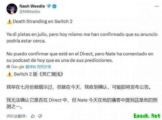 近日有爆料者暗示,《死亡搁浅》可能即将登陆备受期待的任天堂Switch 2。虽然现在判断这则传闻是否属实还为时过早,但对于《死亡搁浅》的粉丝来说,这或许是个令人兴奋的消息。 由小岛工作室开发的《死亡搁浅》最初于2019年登陆PlayStation 4和PC平台,次年推出了PlayStation 5版本。该作在商业上取得了巨大成功,累计玩家人数已突破2000万,同时获得了评论界的高度赞誉,许多评测者对其游戏玩法与创新理念表示赞赏。 爆料者Nash Weedle近期透露,《死亡搁浅》可能即将登陆任天堂Switch 2。他在任天堂直面会前夕做出了这番预测,虽然直面会中并未官宣,但其表示已获得消息证实移植版即将发布。 考虑到Switch 2的性能较初代Switch有显著提升,《死亡搁浅》登陆该平台并不令人意外。任天堂的新主机自发售以来已吸引了多款3A大作,例如《赛博朋克2077》及近期推出的《无主之地4》。2024年末,《死亡搁浅》还登陆了Xbox Series X/S平台,显示出小岛工作室希望让更多玩家体验这款游戏的意图。无论如何,对待此类传闻仍需保持谨慎,等待官方确认。 关于《死亡搁浅》系列未来的许多细节仍不确定。今年初,小岛秀夫曾表示已有《死亡搁浅3》的构思,但并未计划将其付诸实践。当时他明确表示不会执导该系列的第三部作品。 |