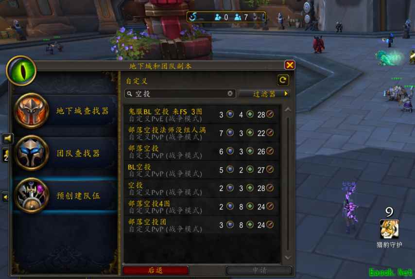 黑暗游侠兽王猎本周完成改版后,虽然称不上大秘境最强DPS,但绝对是大秘境中最适合新手玩家的DPS,3个输出技能无脑按就可以打800万秒伤。但是很多玩家转了黑兽猎后苦于没有饰品,其实大家不用担心,如果没有触须,可以直接花700征服点兑换PVP饰品“星界角斗士的凶猛徽章”,常驻暴击属性契合猎人需要,关键是1分钟一次2万点主属性的爆发完美契合兽王猎的爆发循环。 兑换凶猛徽章需要700征服点,我们点开预创建队伍-自定义-输入空投,就可以满世界收割空投箱子了,一个箱子60征服点,5分钟一个箱子,60分钟刷满12个箱子就可以兑换饰品了!