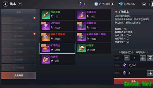 新增元晶商店——现可使用元晶兑换记忆精华、恒能之源魔晶等珍贵道具,更有限时专属属性称号“矿场霸主”助你变酷又变强!