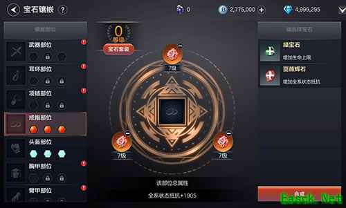 新增宝石类型——新增戒指部位的蔷薇辉石以及头盔部位的坦桑石;