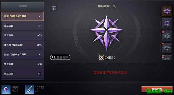 【技能共鸣 丰富技能策略搭配】 开放技能共鸣系统,通过对共鸣纹章的升级,可激活纹章附魔效果,提升属性的同时,甚至可以提供额外的技能强化效果,从而实现更多的技能策略搭配;