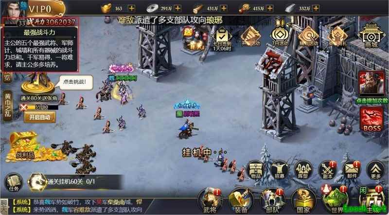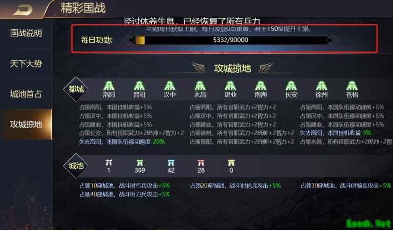 乔乔特意整理了一系列攻略合集,助力主公们征战天下、一统三国,帮助大家更快掌握攻城三国志的玩法。 本帖将持续更新,欢迎各位主公常来看看~ ====萌新必看==== 水怪玩法全攻略 智谋游戏策略解析 襄阳战与士气任务全攻略,合服玩家必读! 爵位等级与特权效果一览 ====玩家攻略==== 新手玩家值得培养哪些武将? 轻松几招,快速提升战力! 不花钱如何获取强力武将? 小R玩家教你用300块玩出3000块的体验! 元宝使用技巧:合理分配,优先提升关键技能与装备。 新手常见问题解答 武将分为二期、三期、四期、庆典、典藏和史诗等类型。 ●默认武将:略 第二期武将包括曹丕和吴国太。 第三期武将包括关银屏与王异。 第四期武将包括孙鲁班和孙鲁育。 庆典武将包括严白虎、徐盛、高顺与邓艾。 张仲景、邹氏武将典藏版 史诗级武将包括:SP孙尚香、SP孙尚香将魂、SP大乔和SP小乔。 步练师身份独特,既是默认武将,也是典藏武将之一。 Q2. 军师技如何获取? 在中,可随机获取军师技能。 Q3. 每日战功或功勋是否有上限?为何持续进行城市建筑却未见战功增长? 每日战功有上限,达到后继续建设城市也不会增加战功。 在中点击,即可查看每日功勋获取上限。 周功勋每日获取不限量,每周一凌晨5点重置周功勋及奖励。 VIP有什么权益?充值能享受哪些优惠? 贵族福利:游戏大厅头像旁的VIP按钮可领取(V0等级也可领取福利!) 周末累计充值享返利 周末若开启累充返利活动,将会在公告中提前公布。具体时间以公告为准,主公们在活动期间累计充值达到对应档位,即可联系客服领取返利礼包。 苹果用户问:iPhone可以运行攻城三国志吗? 宝物如何获得?能否进行合成? 重复获得的宝物会自动转化为30颗宝物星石,可用于宝物升星,但宝物碎片无法合成完整宝物。 贵族商城可用元宝进行兑换购买。 幸运寻宝活动需使用元宝参与。 完成指定关卡可获得藤甲、乌丸马、照夜玉狮子。 藏宝阁主要用于存放和展示珍贵物品。 藏宝阁中宝石可合成,提升等级能增强合成能力。 将宝石嵌入宝物孔位,可提升其生命、攻击、武力与防御属性。 藏宝阁升至18级可合成十级宝石,随机八级宝石价值七百二十元宝。 历史战役通关技巧分享,buff搭配攻略来自大神玩家,建议点赞收藏! 历史战役怎么过?buff怎么买才划算? BUFF:考虑购入兵攻与兵防 国家官职原本属于我,为何突然更换人选? 国家最高官职诞生后,本国战力排名前五的玩家可消耗1000元宝挑战该职位,挑战成功即可继承最高官职。 天下大势进度如何完成? [初露锋芒] 攻占洛阳,完成任务。 完成奖励:刺史称号 本国成员可获得奖励:绝世经验书×5、绝世技能星石×30、元宝×100。 [征战四方] 完成目标:攻占晋阳城。 完成奖励:州牧之位 本国成员奖励:绝世经验书×10、绝世技能星石×50、元宝×200。 [坐拥千里] 攻占长安或徐州即可满足条件。 完成奖励:君王 本国成员可获得奖励:绝世经验书×20、绝世技能星石×80、元宝×300。 [三分天下] 完成目标:攻占长安和徐州 完成奖励:帝王称号 本国成员可获得奖励:绝世经验书×30、绝世技能星石×100、元宝×500。 [天下归心] 完成目标:攻占襄阳城。 完成奖励:天子 本国成员可获得奖励:绝世经验书×40、绝世技能星石×130、元宝×800。 民情任务可在社区或相关平台查找。 ①【民情地图】 打开地图应用,点击事件,选择民情。 靠近队伍选民情,省时高效更便捷。 轻松解锁城市功能 点击地图下方完成x次民情可快速跳转至对应城池,派遣队伍完成任务。 主公们若想节省时间,可使用元宝一键解锁城池,快速获取民情奖励。 战力包含哪些要素? 主公们在排名中看到的最强战斗力,是五位最强武将、军师技、城墙以及所有器械战斗力的总和。 战场顶部的血条显示血量,这里不是战力数值。 武将的具体属性有哪些? 在武将界面点击查看属性,即可一览武将各项属性信息。 增强武力:显著提升武将攻击力。 增强智慧,大幅提升武将攻防能力。 增强将领能力,大幅提高武将防御力。 武将兵种之间存在相互克制的关系。 兵种相克可提升20%伤害,刀克枪、枪克骑、骑克刀。 箭塔克制士兵和弩车,投石车压制箭塔,弩车又克制投石车。 在世界地图防守战中,箭塔会自动切换为城墙模式进行防御。 将同一国家的武将编入同一队伍,是否能提升战力? 【势力羁绊】 [魏国阵容] 两名魏国武将上阵:每次受到攻击有7%概率触发反伤效果。 上阵三名魏国武将可减少20%普通攻击伤害。 五名魏国武将上阵:受到攻击时有13%概率反击。 [蜀国阵容] 蜀国两名武将上阵,攻击力提升5%。 出战三名蜀国武将:普通攻击有33%几率无视盾牌防御。 上阵五名蜀国武将,全体攻击提升15%。 [吴国阵容] 上阵两名吴国武将,提升防御5%。 上阵三名吴国武将可提升20%抗暴击率。 上阵五名吴国武将,获得15%防御加成。 [群将阵容] 上阵两名群武将,暴击率提升7%。 上阵三名群雄武将,提升35%免控率。 五名群雄上阵:暴击率提升13% 我的区服何时合并?合并后有哪些新玩法? ①【合服】 策划将根据各区情况安排合服,具体请留意论坛、公众号及公告通知。 ②【襄阳战】 ③【赛季任务】 合服次日开启新赛季任务。 每个赛季持续21天,任务等级上限为50级。 50级宝箱奖励包含:100万经验、40个赵云将魂、40颗绝世技能星石以及18个飞龙在天。 赛季排名宝箱奖励 赛季等级提升可解