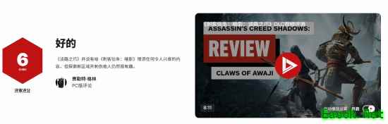 《刺客信条:影》DLC“淡路之爪”IGN6分:并未增添任何令人兴奋的新内容