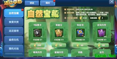 活动时间:4月29日-5月8日 活动规则:使用【足迹】点亮纸鸢图标,达成组合可领取大奖,【足迹】可以通过活动获得。 3)自然宝藏