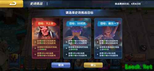 (2)游戏内的玩法模式不够丰富,在赛季中后期比较无聊 任务系统全优化:玩家吐槽较多的任务系统全面改版,取消了所有限定英雄的任务。同时推出全新史诗任务:每5天可以从1V1、3v3、娱乐三种挑战任务类型任你选择,领取挑战赢取大奖,此外还即将推出周常挑战赛,16人一组,1v1公平竞技,决出冠军赢取奖励。