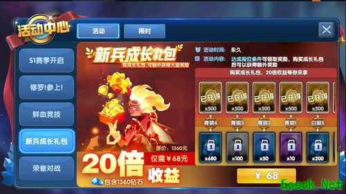 强力英雄剑圣来袭,只要1元,高攻速、高伤害英雄剑圣拿回家,更搭配丰厚首充福利让你开局爽翻天! 5、新兵成长礼包