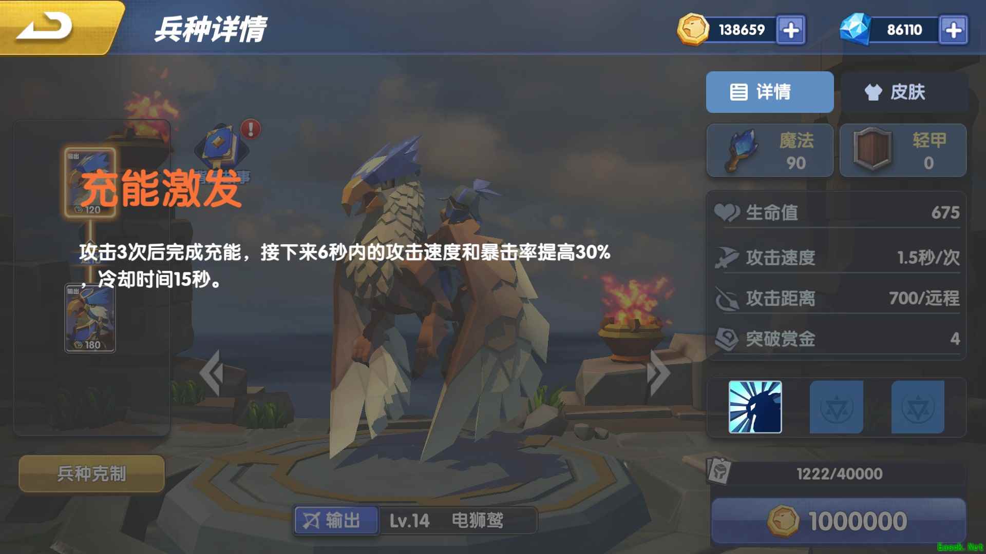 因为电狮鹫的技能是需要预热的,攻击三次之后迎来爆发期,所以需要更多的前排来吸收伤害,不然很容易因为输出不足而被敌方前排突破。 有些兵种进化之后属性增加,但是不改便输出方式以及护甲类型,可能伴有技能的增加。 比如独眼勇士,在进化之后,属性大幅提升,同时多了一个自愈的技能,大大提升了生存能力,其输出方式与护甲类型未变。