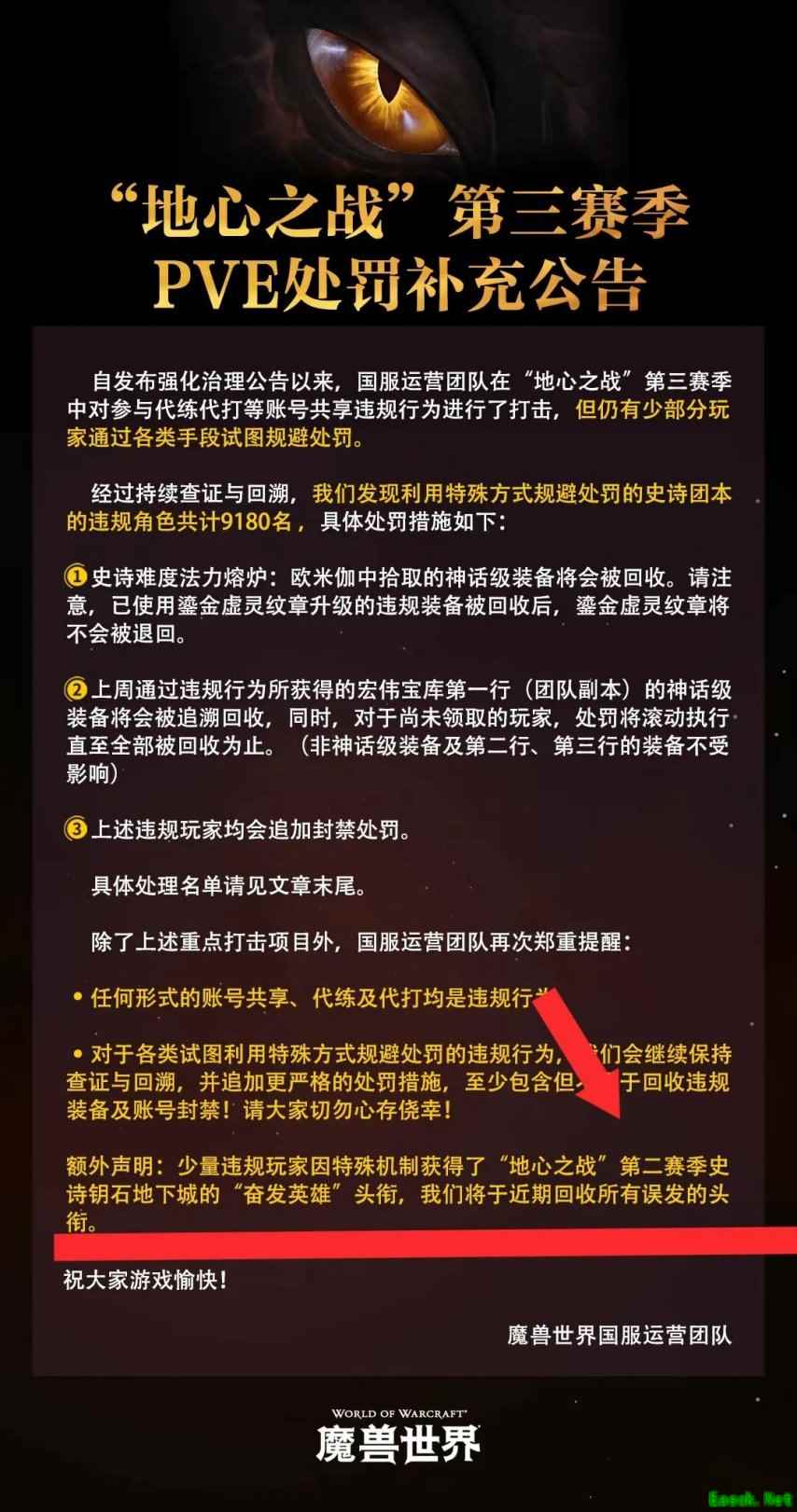 有点意思,国服现在每周4发一次违规封号通知,然后每周2还要再追加一次封号,算下来一个月就有8次大封号,这个力度堪称全球第一,国服的游戏环境也眼看着一天比一天好起来,各大魔兽群再也不讨论哪一家GZS的套餐更划算了,居然在讨论速刷H1~6和开荒M13了,看到这欣欣向荣万物复苏的景象,小探要给雷火大大地点个赞! 最后我们重点关注一下通告最后一段话:将会回收利用特殊机制逃避审查的“奋发英雄”头衔的获得者,看来某些走捷径的玩家高兴早了。