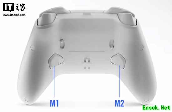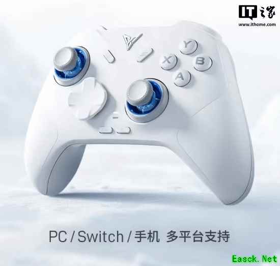 该手柄支持 PC / Switch / 手机一键无缝切换,还可在 PC 端调节多个自定义选项,背部还有两个宏按键。