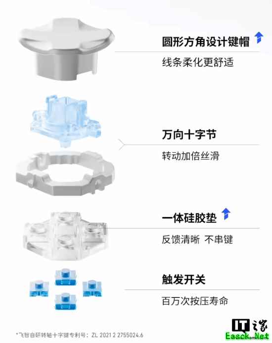飞智冰原狼 4 还升级了急停马达,以及转轴十字键 2.0,按键线条更柔和、使用寿命更长。