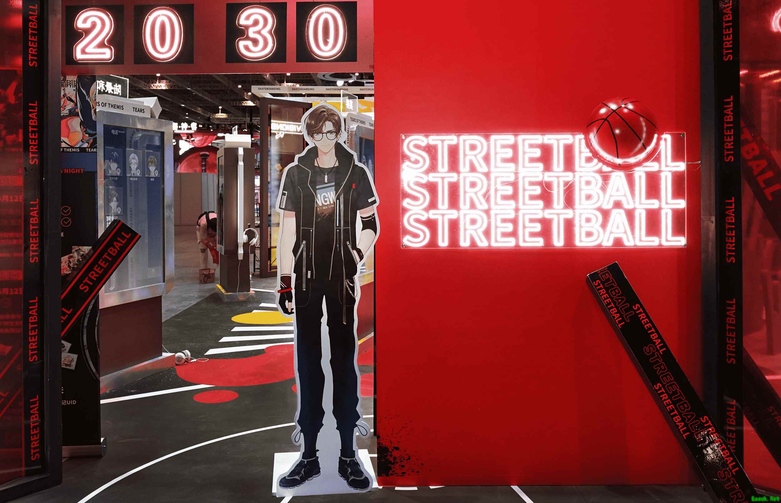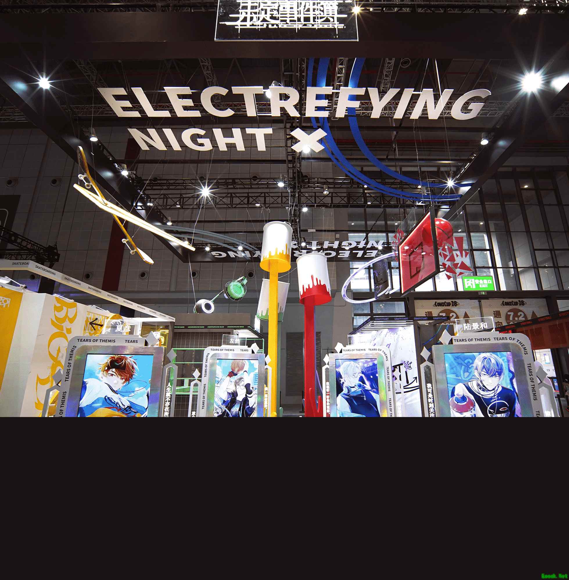 燃动潮流夜主题展台 燃情夏日心动邀约 《未定事件簿》CP28展台由滑板、街篮、音乐、涂鸦四大潮流领域构成,运用缤纷多彩的涂料和闪耀炫目的光带,营造了欢快、自由的街头潮流氛围,体现了游戏全新活动「燃动潮流夜」的主题特色。 炫酷的展台布置吸引了诸多玩家驻足拍照合影,玩家在富有节奏的音乐伴奏下,尽情享受燃情夏日的动感氛围,记录下与心仪的他共度的甜蜜瞬间。