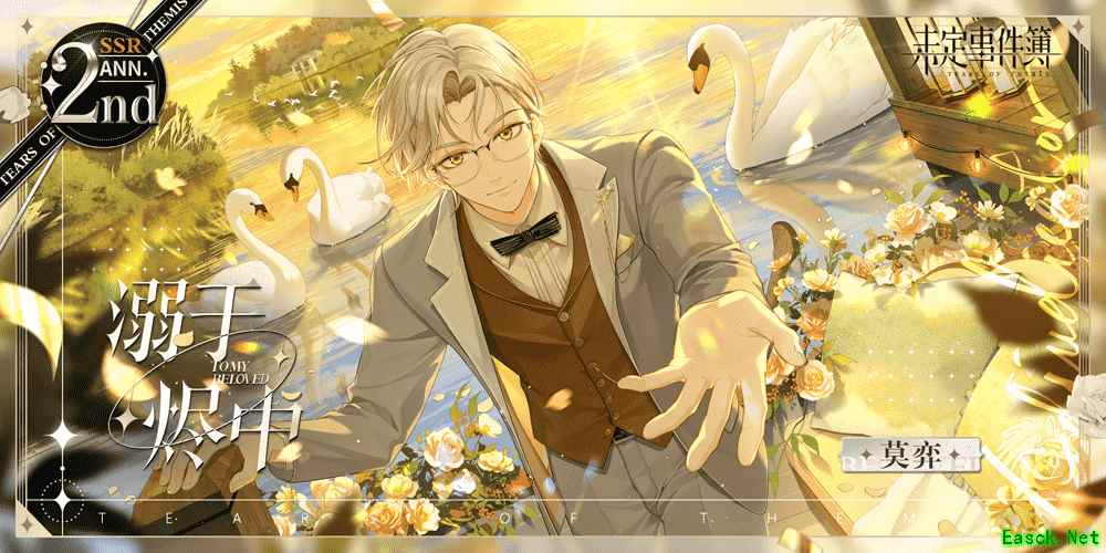 7月21日「约定之日」周年庆特别活动第二阶段开启,周年庆限定ANN.SSR思绪、全新动态邀请函、更多精彩活动剧情、多样活动限定福利……约定之日,情许之时。书写倾心回忆,许诺此生誓言。 全新周年庆ANN.SSR思绪 眷慕似海应许此生 伴随PV公开,四张全新周年庆限定ANN.SSR思绪,共赴浪漫邀约,定格情许瞬间。 本次周年庆限定ANN.SSR思绪拥有纪念插画,故事剧情为特别三段式定制。阅读完故事剧情还可获得他的3D订婚信物及情许徽章。 年华似水,灼灼情深。献上过往和将来的一切。