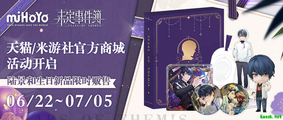 精美生日周边上架 相伴温馨岁月 6月22日起,《未定事件簿》官方天猫商城及米游社未名商城开启陆景和生日活动,多样精美周边上新,多重福利活动限时开启。 为庆贺陆景和生日,商城将上架「繁忆幸时」系列周边,陆景和生日纪念礼盒、精美生日徽章、色纸、庆生装饰画、全新立牌……多款生日限定周边上线,珍藏与他共度的心动点滴。