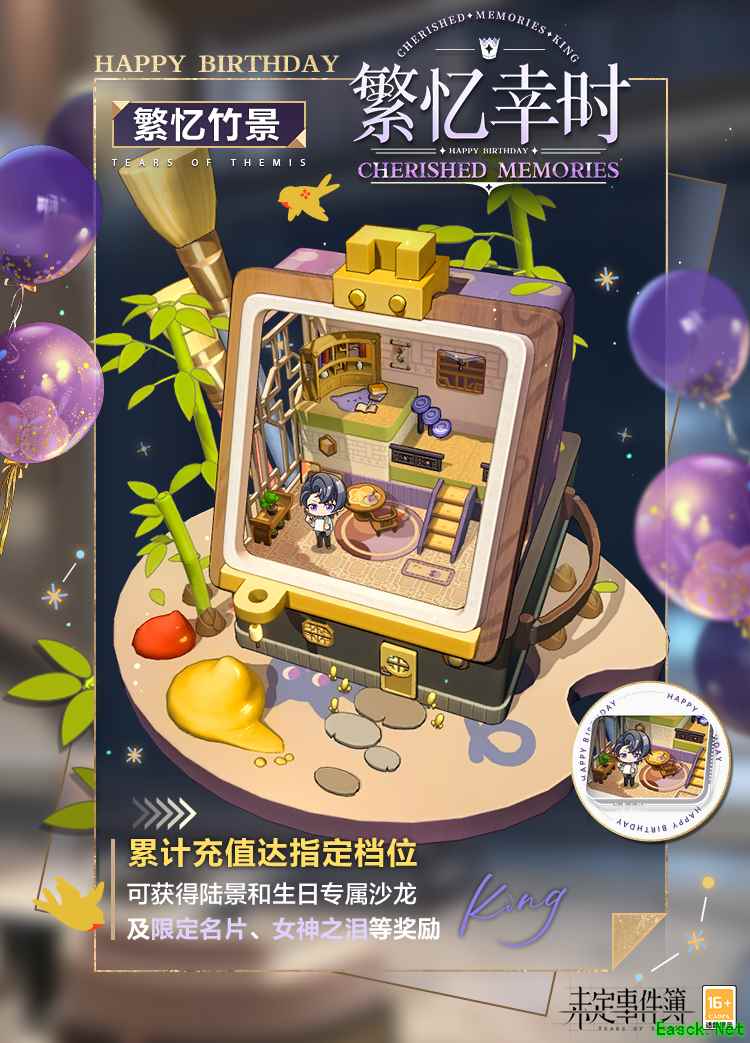 三、「繁忆幸时」限时活动开放,生日活动福利解锁 6月13日起,「繁忆幸时」限时活动开放,玩家可在活动中与陆景和共同体验签文小游戏、完成寻物谜题。活动期间,完成生日限时任务可获得陆景和R思绪【期冀】、生日限定服装【陆景和·繁忆】、生日限定背景【陆公馆书房】、活动纪念徽章【繁忆幸时】及【女神之泪】等多重限定奖励。