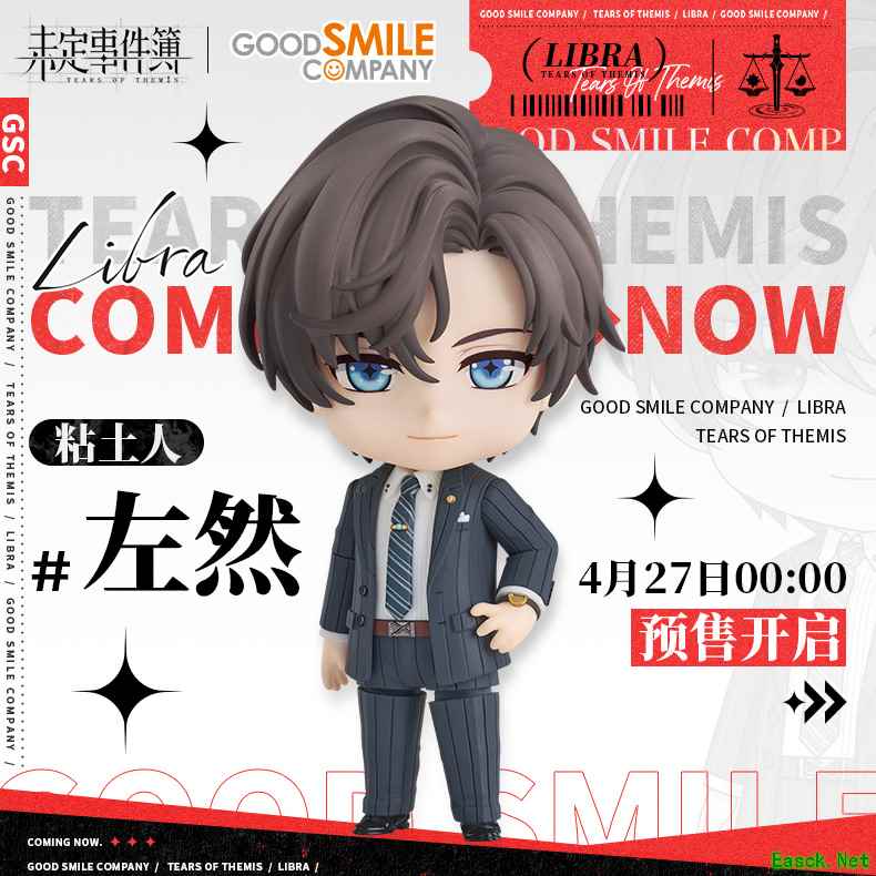 此外,GSC粘土人手办 左然款也将于4月27日在《未定事件簿》官方天猫商城、米游社未名商城和goodsmile官方店铺正式开启预售。粘土人 左然款共包含3款表情配件、3款物品配件、4款肘部配件和8款手部配件,并随手办附赠游戏内【逸趣·左然】限定名片,预售期间购入将额外赠送特典亚克力挂件·左然款。