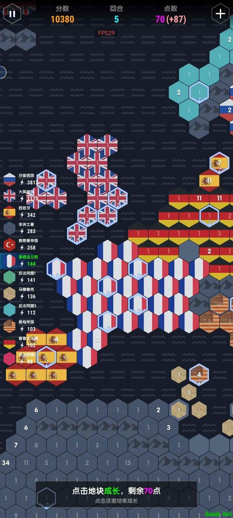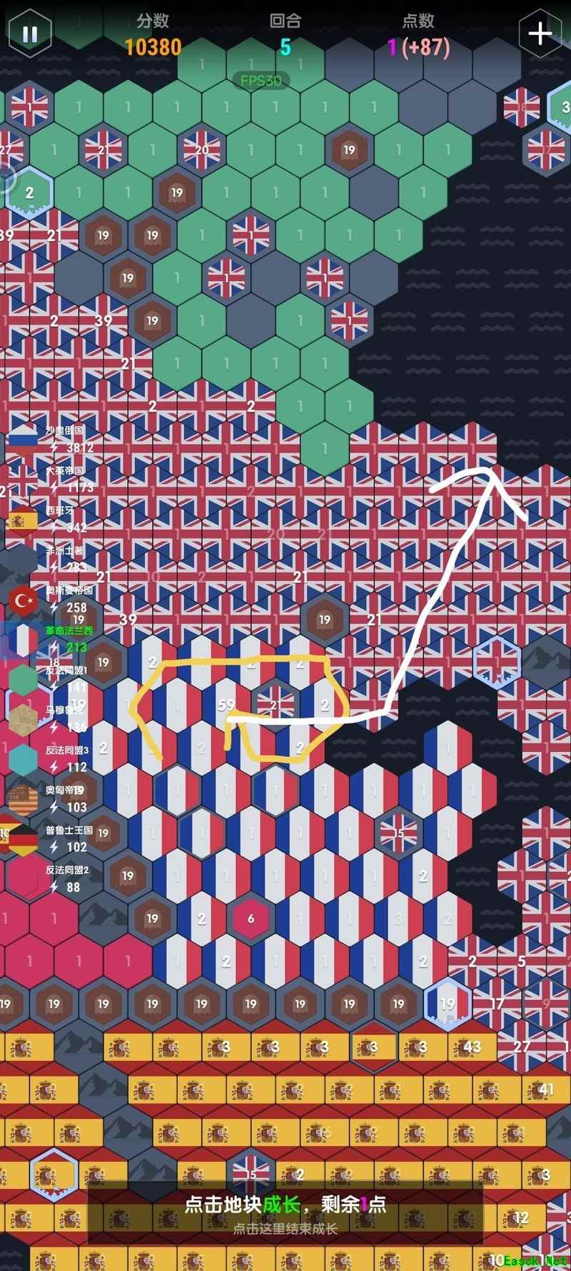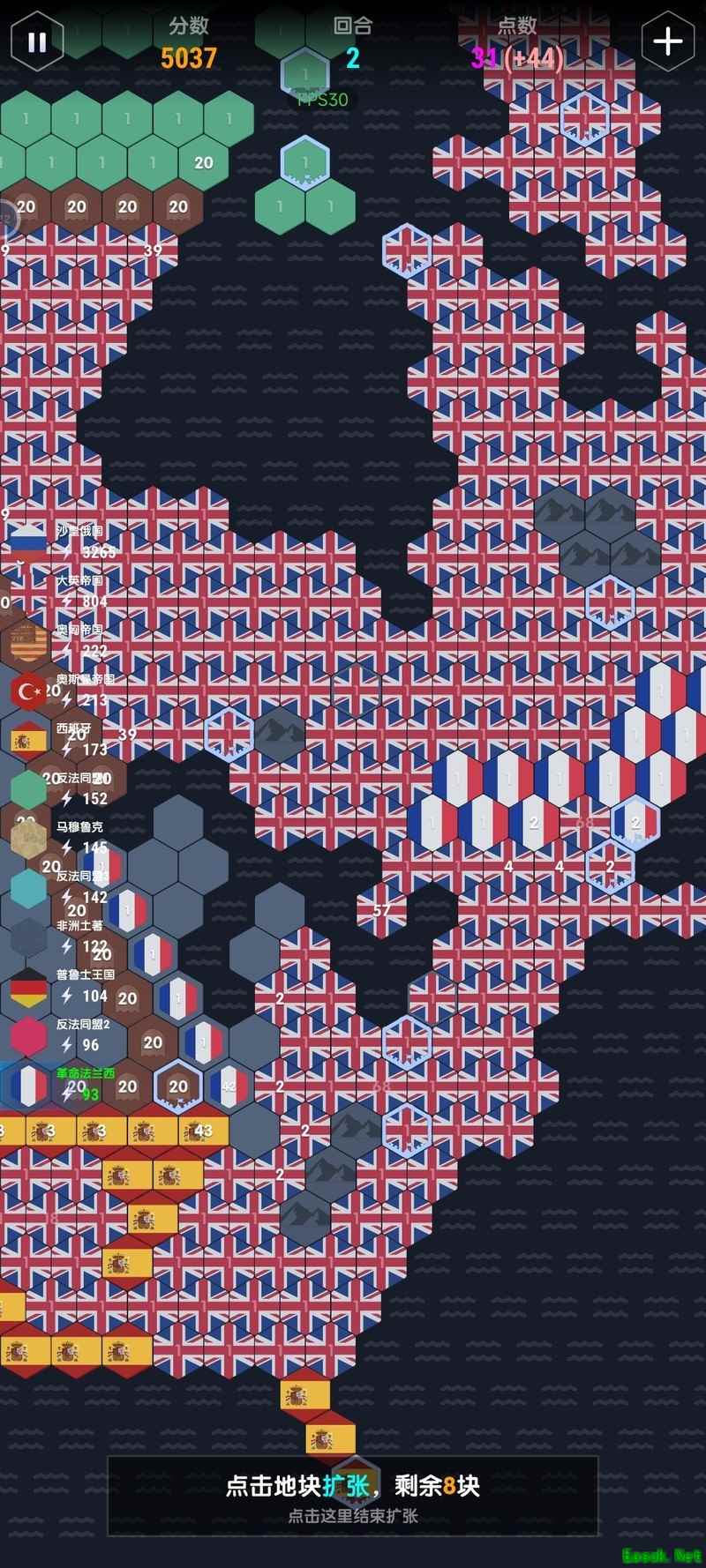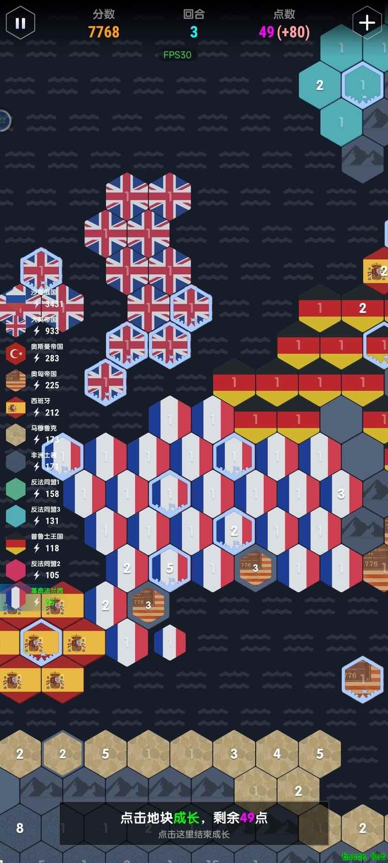 数字领主战报开启!本期聚焦法国大革命-拿破仑混战地图,难度拉满,局势复杂。欧洲美洲割裂,英国强势封锁,法国如何破局?开局思路详解,带你探索双线作战的生存之道。 大图玩坏了,这次只破局,不打完整图了。 这张地图由九日樽前大佬制作,是我玩过混战地图里难度很高的一张,上一次有类似体验还是元末那张图。 由于时间有限,目前只初步理清了开局前几回合的思路,先做个记录。 闲话少说,先上图。 本图也进行了颜色调整处理。 美洲开局概览 欧洲开局概览 超级大毛! 放眼全球局势,欧洲与美洲被英国海上一系列据点分隔,未击溃英国前几乎无法通行。若不想长期被困,必须同时在欧、美两洲展开行动,任何一边都不能完全放弃。 这张地图的最终对手看似是英国和沙俄,其中英国势力主要集中在美洲,而沙俄则在东欧占据优势。具体谁会成为最终对手,主要取决于玩家的发展重心。由于英国在欧洲和美洲之间起到了分割作用,因此多数情况下玩家会优先选择以美洲为发展核心,这样一来,沙俄便成为最终的主要对手。其实从沙俄那夸张的初始点数和据点分布,也能看出它才是真正的关键对手。 仔细查看地图细节 欧洲初始 游戏开始时,有6张2可以行动,三个相邻的据点在第一回合只能占据其中一个。旁边的西班牙和英国都不是能迅速击败的对手,再往东则是战局混乱的地区。 欧洲并非发展重点,初期应维持低消耗的基本盘,为美洲提供支持。根据地形布局如下: 欧洲基本盘 与意大利接壤处形成一宽正面直接对峙,同西班牙构成两宽夹击之势,与普鲁士则呈现四宽均势防守。由于地缘限制,普鲁士初期难以抽调兵力骚扰,若开局部署得当,极有可能实现稳定和平局面。 接下来细看美洲情况 美洲初始 英国开局四组70大点直扑美洲两个据点,我方版图狭长难以防守,建议直接考虑撤退路线。 逃跑也有短期和长期之分。先考虑长远,哪里基础稳固又易于防守? 美洲目标 瞧瞧这地形,简直是天赐良机。白圈起初势力单薄,向南夺取红圈后,依然具备防御优势,随后向东扩展,进入开阔平原,便于展开攻势。作者的设计意图似乎很明显,长远来看,美洲的战略重心应逐步转向白圈,以谋求更大发展。 短期内无论如何都需先积累资本,仅靠法国初始的地缘条件难以积攒太多资源,因此初期应另寻稳定的根基。 当前思路大致如此 美洲早期主要基础 南边依靠野怪防守西班牙压力不大,主要威胁来自北边和东边的英军。最大的隐患在于我方唯一据点紧邻水域,极有可能遭到英军舰队登陆攻击,导致据点仅通过一个安全格与主区域相连,这样一来,据点的防御将变得异常艰难。 分析内容到此结束。 开局操作方法如下 欧洲开局 所示,优先攻占南侧沿海据点,阻止奥匈军队直接登陆。左侧7号目标为夺取西班牙三地,构建理想的两宽防线;右侧8号目标则是控制通往奥匈亚平宁半岛方向的一宽对峙点。其余小据点以占领为核心,尽量避免引起邻近势力的警觉与反应。 欧洲形势相对简单,两回合便能奠定基本盘。 再看美洲 美洲开局 右上方据点及其左侧两格处加至2,目的是引导英国初始大点行动,使必丢的据点能尽可能多地提供点数。 左边一排的2点用于诱骗纵向野怪,其余点数加在野生据点旁,第一回合先诱骗再夺取据点,随后清理所有野怪。 以上是开局的布局思路,接下来咱们继续。 新的分界线已更新… 社畜加班到昏倒,可恶,真想做战报。 周日加班至深夜,怎未猝倒? 终于等到鱼摸,开始更新! 虽然大多数开局都能应对,但不同开局的舒适度差异明显,本局开局运气较好。 欧洲开局 美洲开局 欧洲局势平稳,美洲方面英国开局强势突入西班牙领地,双方将陷入消耗战,对我方而言是个利好消息。 按照计划行动即可 欧洲行动与加点技巧 美洲东部沿海增点 美洲西线行动及加点措施 欧洲地区只需注意不要在与普鲁士相邻的区域增兵,以免引发冲突。用几个回合解决掉奥匈的浮动兵力,在西班牙边境部署好两路防御,便可安心发展。 美洲方向,右侧据点尽量多撑一回合,只要损失的防御点比剩余地块少就算赚,实在撑不住就放弃。 左侧最关键,开局先清理野怪,走出一个看似不美观的形状,其实这个形状另有玄机,稍作详解如下。 下方及左侧靠近野怪的位置尽量留出一格作为缓冲。若西班牙剩余点数较多,可能在野怪南侧加21或39点。若为39点,则会直接冲入我方预定区域。为减少损失,应预留一条通道供其进入,之后只需切断电力即可轻松应对。 在北侧设置一个凹形结构,把大点隐藏在凹陷处,并在相邻后方位置布置骗点。这样凹形上部可降低英军绕弯连接我方大点(14)的概率,即使连接,也只会形成一个接触点,可用骗点应对。若英军未能连接,我方大点便可灵活扩张地盘。 结果是,英军行动后并未与我方大点接壤。 第三回合即将开始 欧洲塑形 美洲东部仍可支撑 西线操作悄然启动 欧洲无需多言,维持现有策略,逐步覆盖普鲁士边境。 美洲右路据点还能再支撑一回合,稳住了。 左侧据点显示,西班牙似乎无力大幅北上,红色力量却已沿我方左侧预留小路深入。我方主力正向左移动以切断红色扩张,同时对据点进行适度加固防守。 在红色据点附近,英军被野怪攻击后增加了防御点数,利用红色存在,只需添加两个2点部队,诱使英军优先攻击红色。 由于野怪的威胁,英军在上方接壤处加了一个大点,我方则