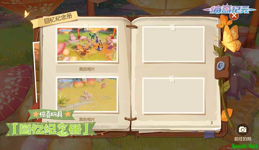 强大相片拼图功能!春日玩具上新啦 海岛正是山花烂漫时,好风景当然要拍照留念啦!在「花见雅集」期间,玩具工匠黎纳多全新力作「回忆纪念册」闪亮上线。相片也许会褪色,但与好友的回忆可以永远珍藏在纪念册里。一起使用「回忆纪念册」,将相片变为相片拼图,赠送给好友吧!