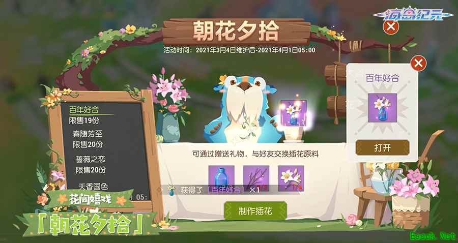 海岛赏花季 邀你玩转限时活动 阳春三月,海岛已经处处春意浓。「花见雅集」期间,海民不仅有机会换上春日气息十足的外观,还有限时活动等你玩转。春暖花开的日子,鲜花不仅是风景,还是酿酒做菜的好材料。可是芬芳的花朵也吸引来了火凤蝶,居民们被扰得无法工作,只好请来尼古拉想想办法。海民们快来「凤蝶恋花」看看尼古拉的特制花篮有什么用吧?更有奖励等你来拿!