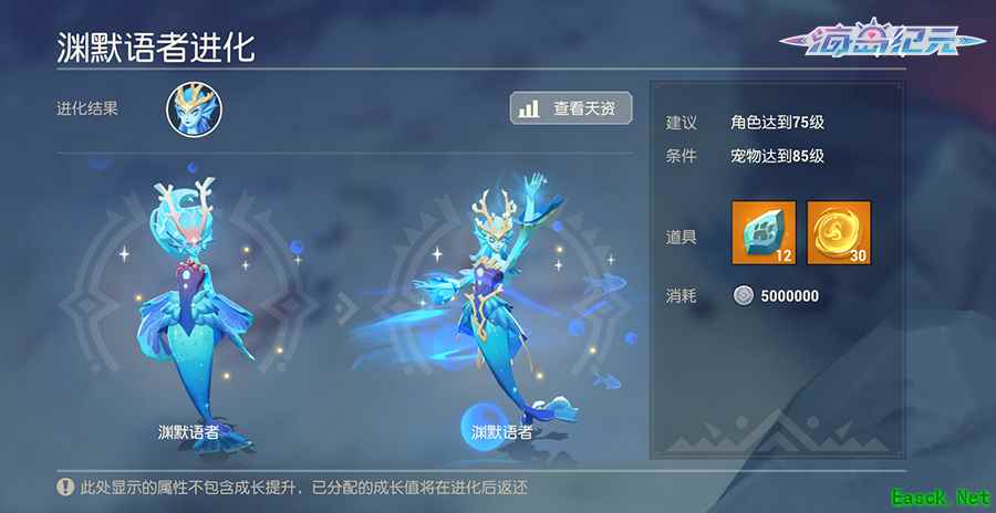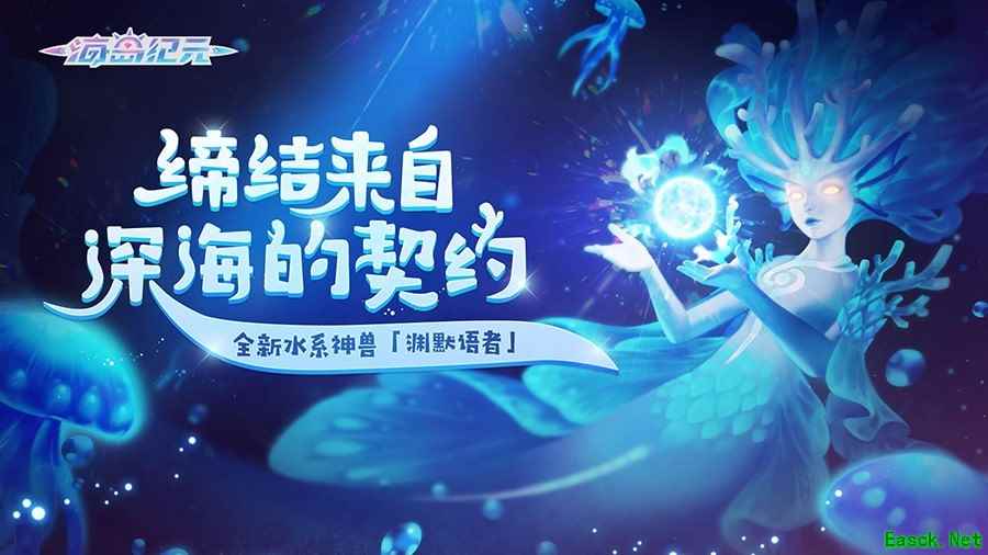 深渊之主暗冰觉醒 全新水系神兽登场! 虽默然不语,却如深渊凝视。作为继「永茂主宰」后又一只神兽,「渊默语者」战力不凡,具有硬控效果。作为水系神兽,人鱼身型的它灵动而梦幻,具有鱼鳍等水生生物的特点。身上点缀的珍珠,增添了几分高贵和璀璨。三阶进化后,「渊默语者」华丽绽放、技能升级。通过往其精魄中注入一定数量的「纯水之恩泽」后,即可使精魄具现,从而获得「渊默语者」。
