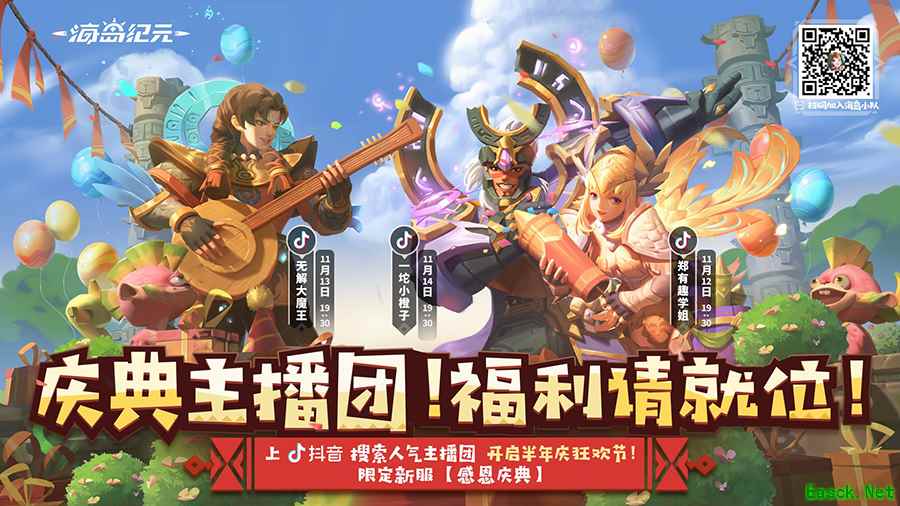 庆典主播团!福利请就位 看直播享福利,为庆典喝彩!11月12日至14日每晚7点30分,《海岛纪元》邀请您来半年庆直播间共度狂欢之夜~届时,海民们只需抖音搜索人气主播团,即可参与直播活动,与庆典主播团的郑有趣学姐、无解大魔王和一坨小橙子一起,为海岛庆生啦~