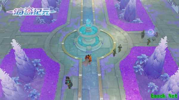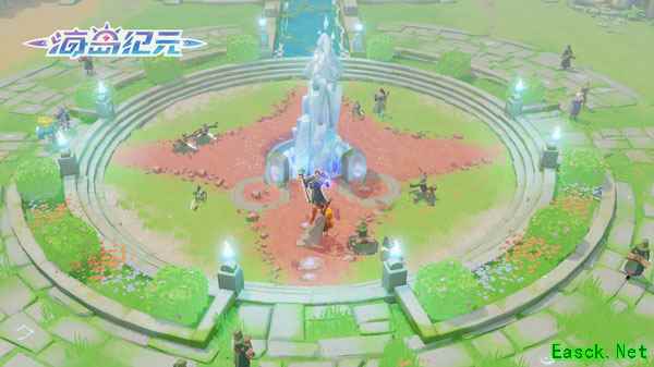 面对危机,贾鲁大师领导大家,依托灵风城独特的地理优势,进行艰难的反击。最终,大家携手将混沌军团赶出了卡琅古之地,但也付出了巨大的代价。 如今的灵风城,历经修缮与发展,逐渐形成了多个风格各异的区域。接下来,就让我们近距离了解灵风城吧! 永恒的中心,圣者广场 圣者广场是灵风城的地理中心,也是城市的交通枢纽和集会场所。从这里,你可以到达灵风城其他区域,也能走出城门,前往缠风峡湾进行冒险。 在广场中央,伫立着一尊精美的雕像,它纪念着源初圣者,是各位朝圣者心中的圣物,所以,可千万不要轻易打扰那些前来祷告的朝圣者。同时,这里也是冒险者们集结的地方,如果和你的伙伴走散,来这里重新集合也是不错的选择。