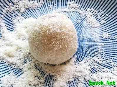 第一步:蒸“皮” 将糯米粉与白糖混合搅匀,加入牛奶搅拌均匀制成糯米团生胚。