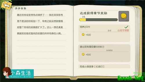在日记系统中,通过自宅等级解锁的章节为正传,而通过其他条件解锁的章节为外传。完成日记右边的任务可以获得相应的章节奖励,还可以为日记贴上心中印象深刻的照片,在解锁、丰富、完成日记的过程中,这看似柔软、甚至激不起一丝波澜的日记,像蕴藏着力量般推着你向前,也让你与小森的羁绊渐渐加深。