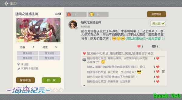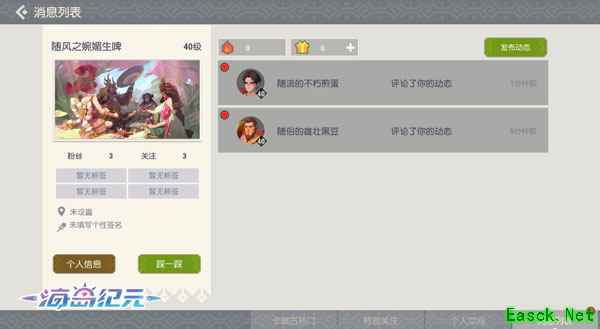 在冒险途中,玩家可以通过海民圈子进行动态发布,表达个人心情、分享旅途想法、传授冒险经验,通过经营自己的个人空间展示个性。同时,玩家们还可以【特别关注】卡琅古世界中的其他海民,迅速了解海民红人们的资讯!