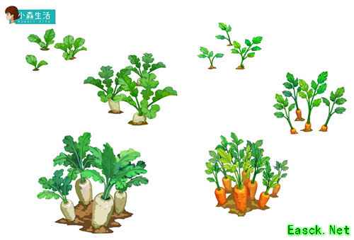 【数十种农作物 全美的生态体系】 山青水绿的小森,构成了一个完美的生态体系,在这里你可以种植蘑菇、番茄、萝卜、黄瓜等数十种农作物,还可以观察到这些农作物的生长过程,比如圆圆胖胖的茄子,成熟了就会变成深紫色。还有白萝卜和胡萝卜,不挖出来,都很难分辨出它们的品种。这些,都需要来到小森的每一位玩家仔细研究。