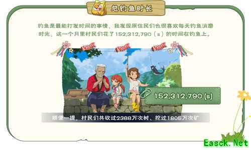 钓鱼、砍树和挖矿是小森村民的传统技能,一直以来就备受大家喜爱~测试期间,村民们总共花了多少慢吞吞的时光在钓鱼呢?森林里又有多少的树木和矿石成为了大家建设家园的原材料?