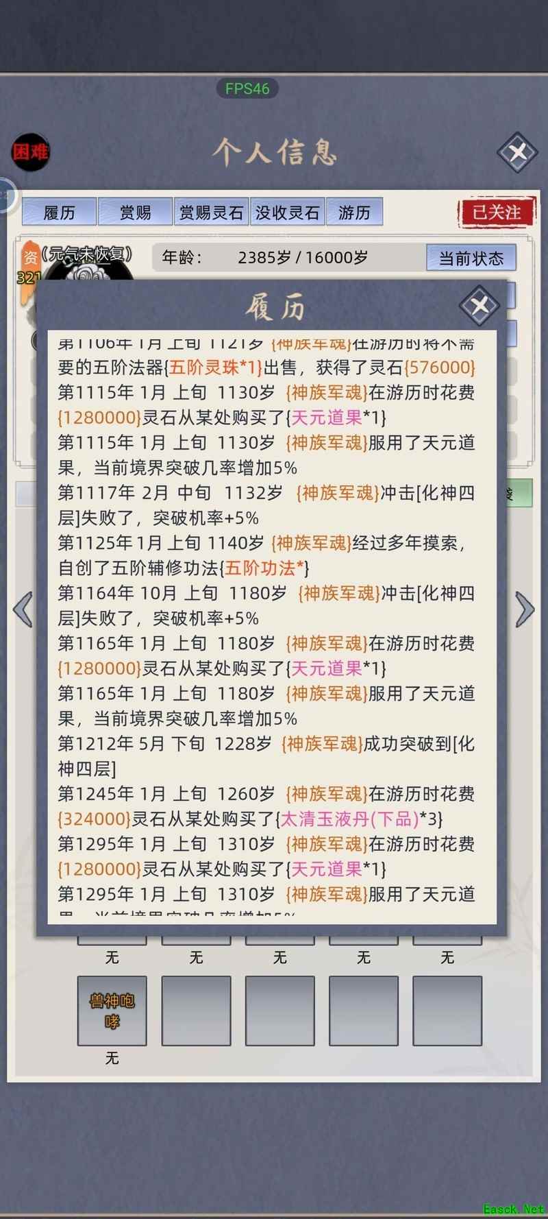 回来后继续游历,给老祖200万灵石。他自己会购买神元丹,每次买九到十颗,买到后立刻从储物袋中取出,只要储物袋空了就会继续买,几次后元婴便圆满了。此外,他还会购买突破草。