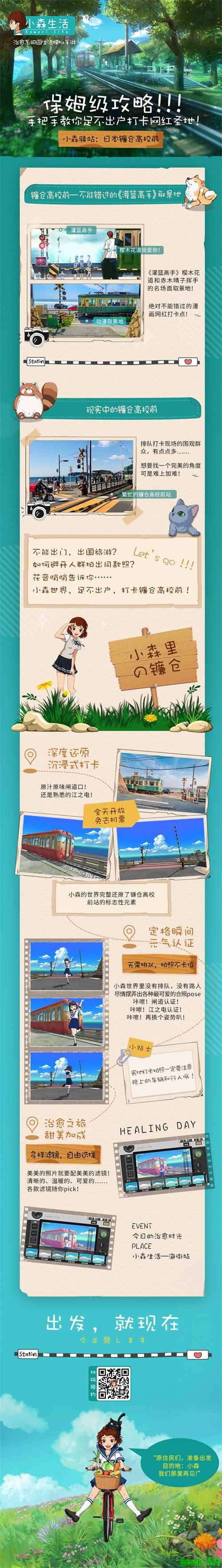 海街车站 无论是宁静安逸的日系村庄,还是充满神秘气息的古老神社,甚至是樱木和晴子挥手的镰仓高校前的车站,你都可以在小森寻得踪迹!今天第一站,让导游“花音”带你一起去海街车站打卡,重温那让人难以忘记的热血青春~
