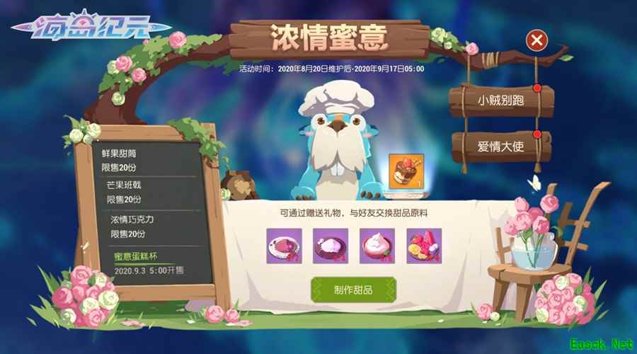 享用浓情蜜意甜品 从味蕾开启甜蜜之旅 节日宴会盛大开启,自然少不了「浓情蜜意」玩法献上的甜甜美食。从今日起,大家通过组队玩法「小贼别跑」和单人玩法「爱情大使」,都能筹集到制作材料,可可粉、糖霜、奶油可以马上烹饪出浓情巧克力、芒果班戟、鲜果甜筒等美味甜点,带你开启舌尖上的甜蜜之旅喔!而9月3日后,节日甜品中的神秘C位——蜜意蛋糕杯,也将正式甜美开售,让美味之旅再次迎来高潮,你想好要邀请谁一起分享这一份甜蜜馨香了吗?