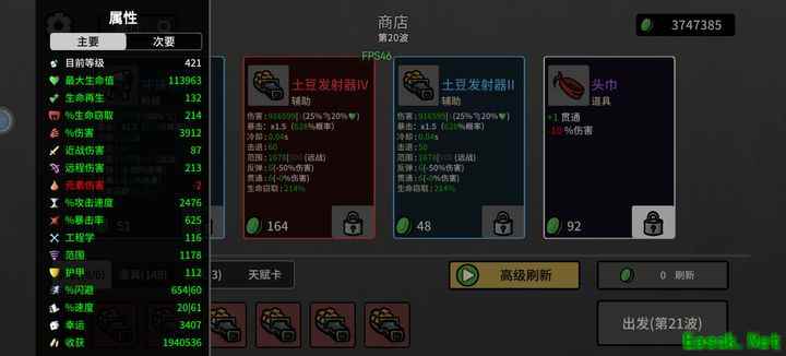 在土豆兄弟无尽模式中,快速积累资源是通关关键。本文分享高效玩法思路:前期专注提升收获属性,快速刷取核心道具,20层前达成属性巅峰,轻松应对中后期挑战。掌握这套策略,轻松玩转无尽关卡。 刷了几个红色装备卡,全选了二级收益,这把应该能冲到高层无尽了。 核心思路仍然是在20层前尽可能刷满关键道具,因此要充分利用收获卡。我通过叠加达到每把增加66%收获的效果,并在20层内优先刷出提升收获的升级和道具,这样大约5级后,刷新道具所需的材料就基本不缺了。 由于是指数级增长,升级速度非常快,可以优先提升收获属性。当达到十级左右、材料积累到一定数量时,就要多刷新商店购买道具。因为前期道具价格较低,容易购买,而后期若过度消耗材料,会导致血量和攻击力下降。 在这一阶段,要优先收集眼球、护垫、外星人、辣椒等关键道具,同时尽量获取能提升收获、血量、攻击和幸运的辅助道具。大约十层左右,角色就会变得非常强大。我通常会将刷新价格控制在1000左右才开始正式游戏,这样核心道具往往在几局内就能集齐。 到了20层左右基本就达到巅峰状态,所示,收获接近200万,材料超过300万。每次升级几十级都能增加属性,30层之前都按这个思路刷。核心属性方面,速度和暴击达到上限后,主要提升血量、攻击和幸运。收获点数在20层前比较关键,20层之后每层掉落减少20%,曾有一把掉了40万,因此再投入收获意义不大。 后期随着收益递减,怪物属性不断增强,40层前应多刷基础商店购买道具,积累伤害和血量;40层后则以保存资源为主,尽量走多远算多远。 前期幸运属性特别重要,掉箱子的几率很高。这局游戏开始时慢慢找到了节奏,属性已经很强,每层在选择升级和开启箱子上花费了不少时间,幸运值递减的情况还不明显。以前打到一百层左右,幸运值在1500左右时,除了Boss关卡基本很少见到箱子。而现在才四十层左右,幸运值已有四五千,每层能遇到十几个箱子,可见前期属性成长非常迅猛。 核心思路基本如此,玩透后挑战性下降,但可自由选择喜爱的角色模式,无需花费大量时间观看广告获取道具。 每次升级加属性和购物都好麻烦,现在总算明白有钱人的困扰了。
