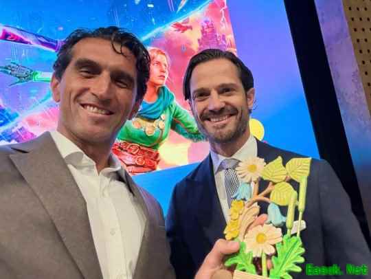 工作室在社交媒体账号上分享了创始人兼《双影奇境》总监约瑟夫·法瑞斯与颁奖人瑞典卡尔·菲利普王子的合影。
